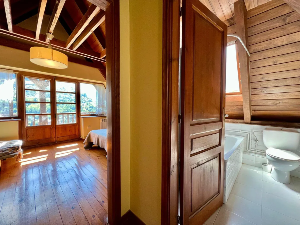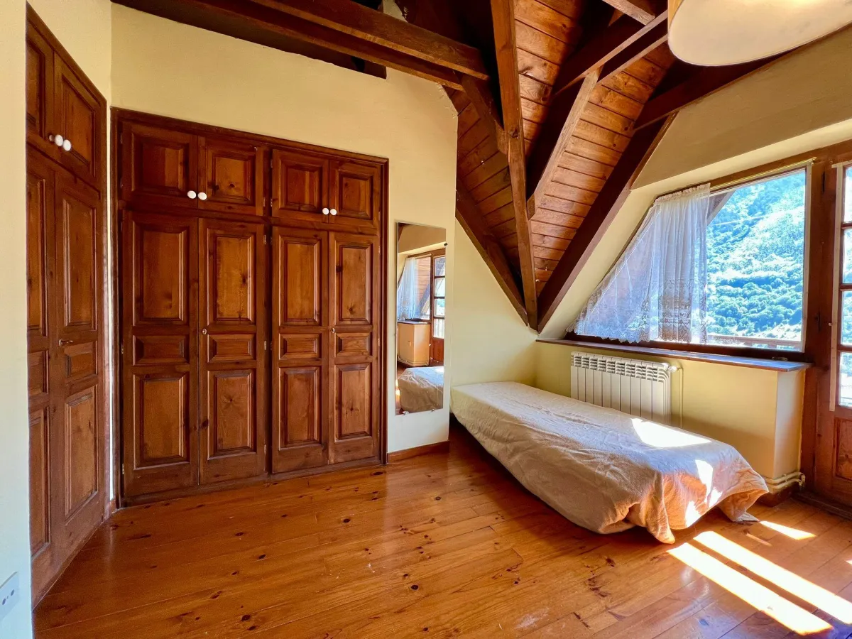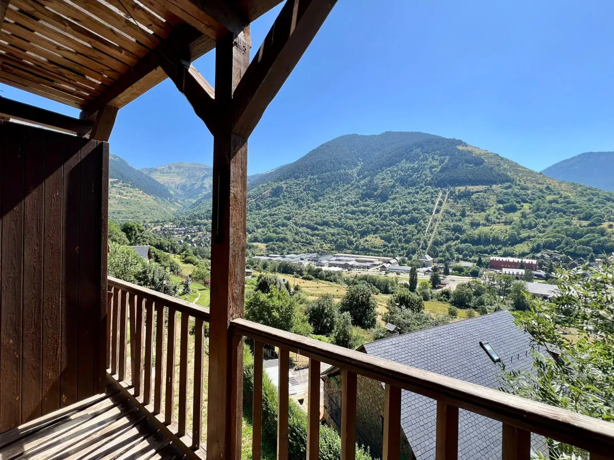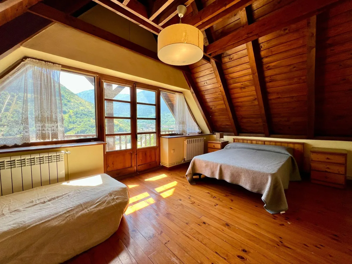 En Gausac, a 3 minutos de Vielha y 20 minutos de Baqueira Beret, este adosado con vistas optimiza el espacio en tres plantas para una vida práctica en el valle.