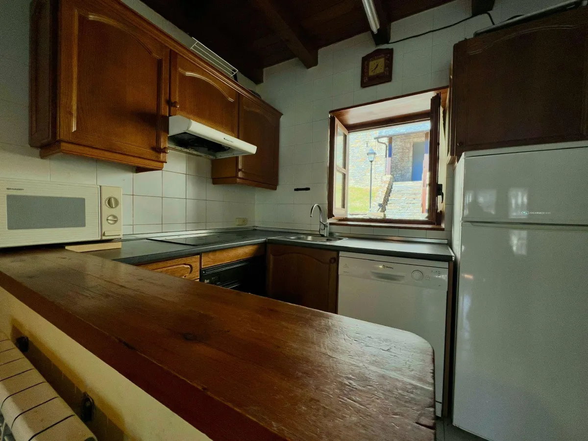 La planta principal alberga un salón-comedor luminoso con ventanales y salida a balcón, junto a una cocina abierta muy funcional.