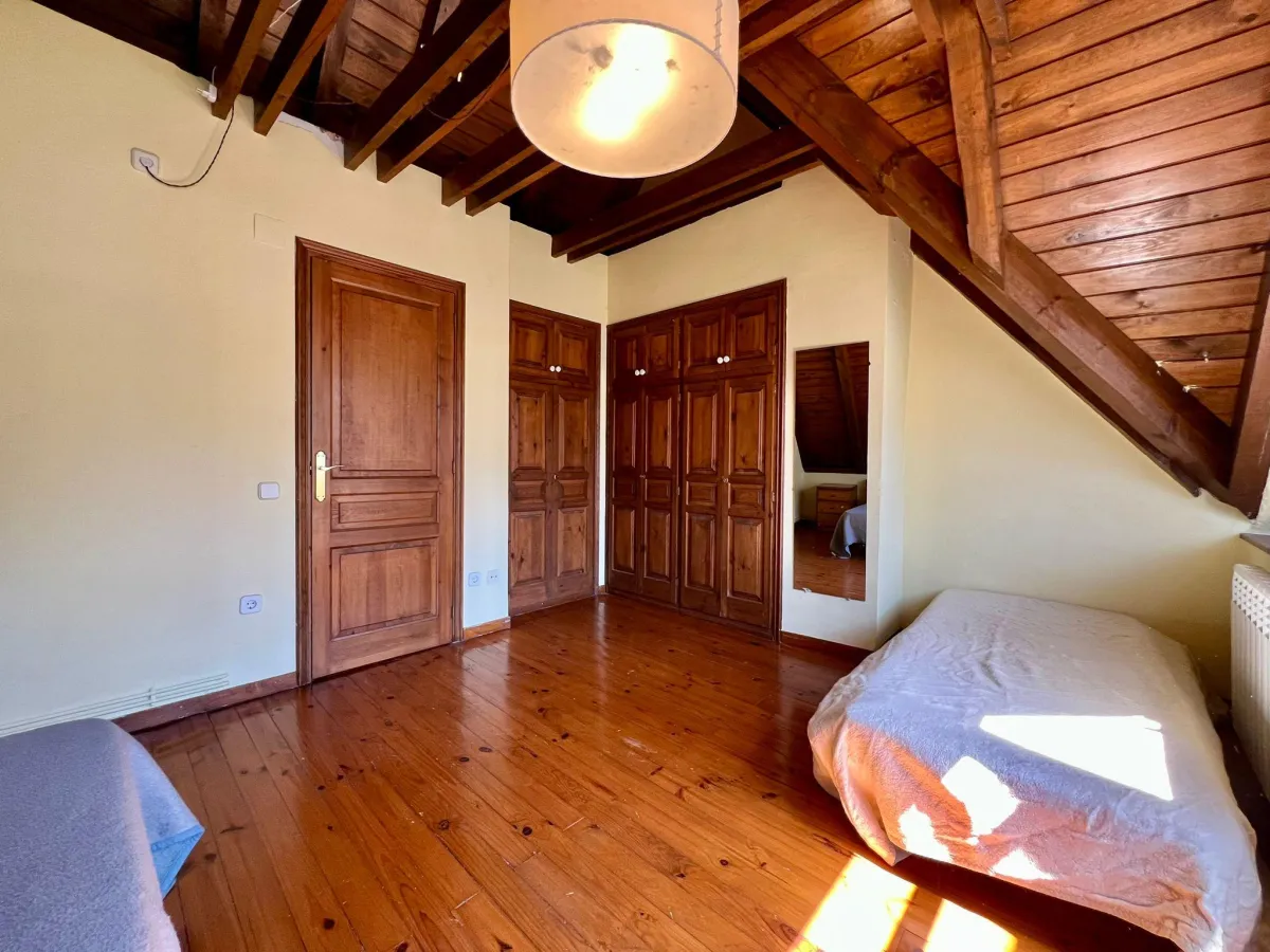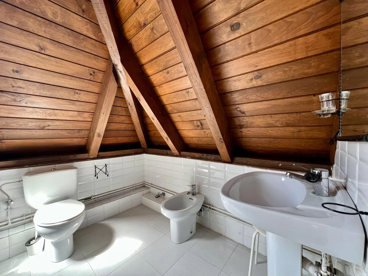 La planta bajo cubierta acomoda una acogedora habitación doble con baño en suite, perfecta como dormitorio principal o espacio de invitados.