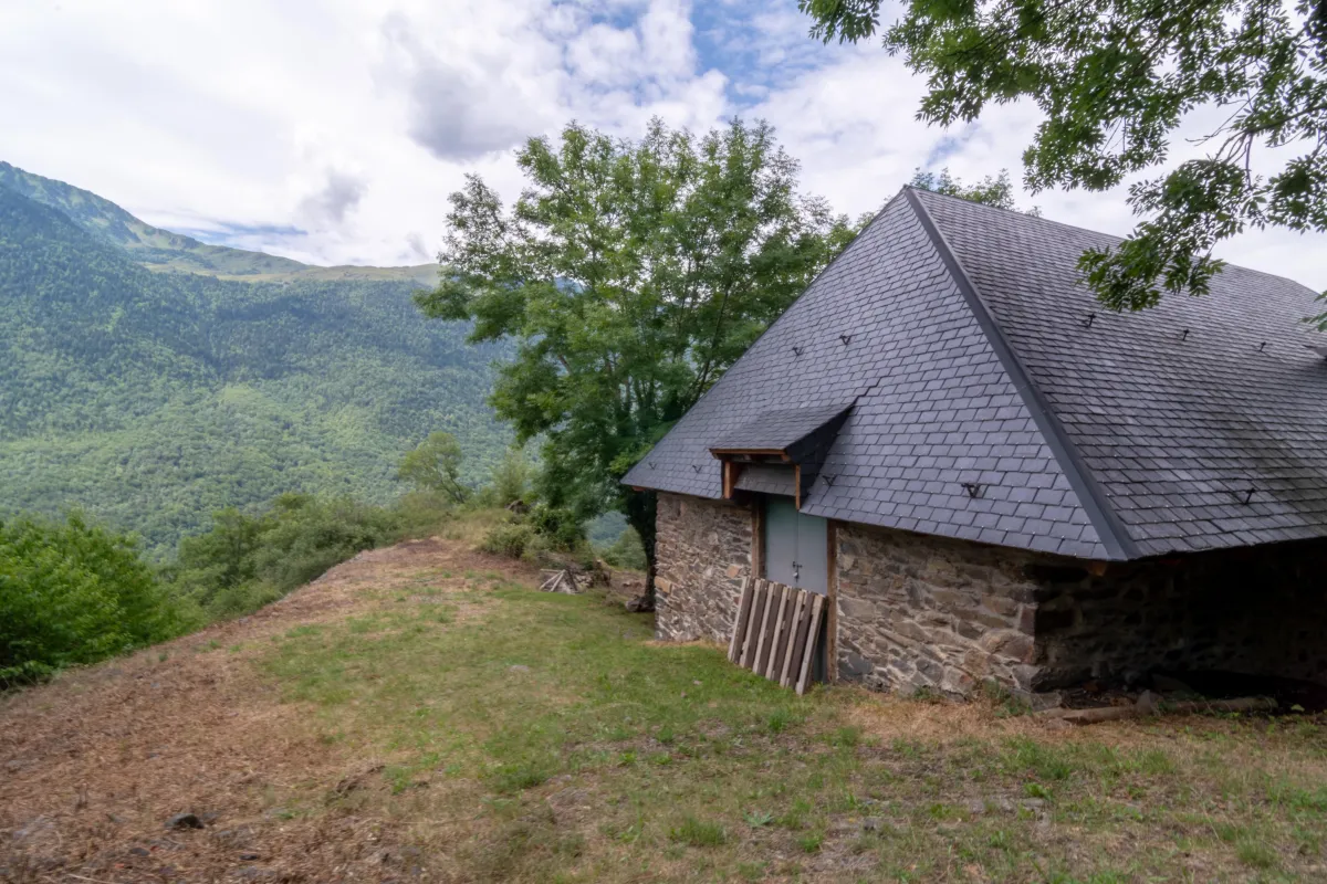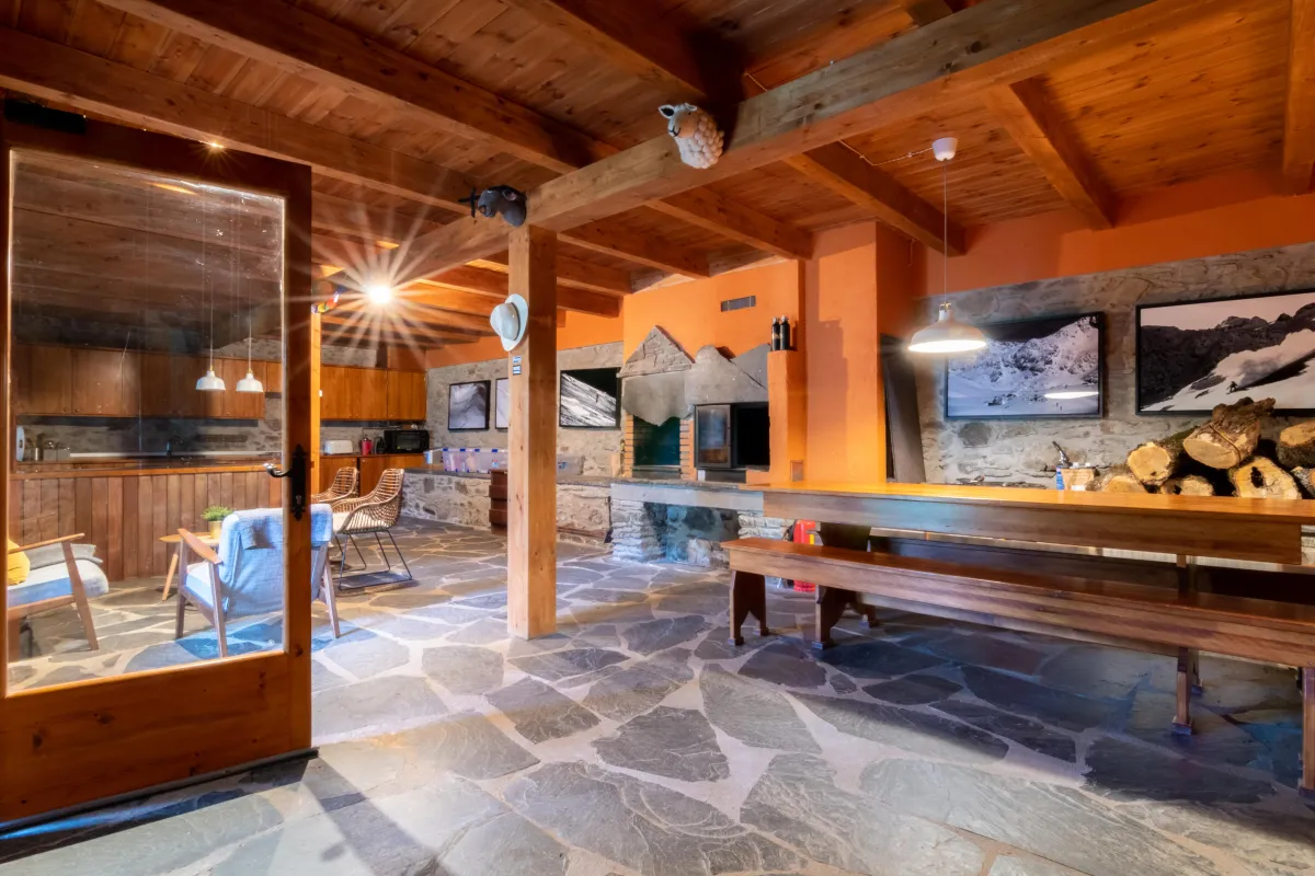 En una gran parcela privada de ~20.000 m², se levanta esta borda aranesa de carácter genuino —conocida como Borda Manaix—, orientada al sur para aprovechar la luz natural y con vistas abiertas al Pico Aneto.