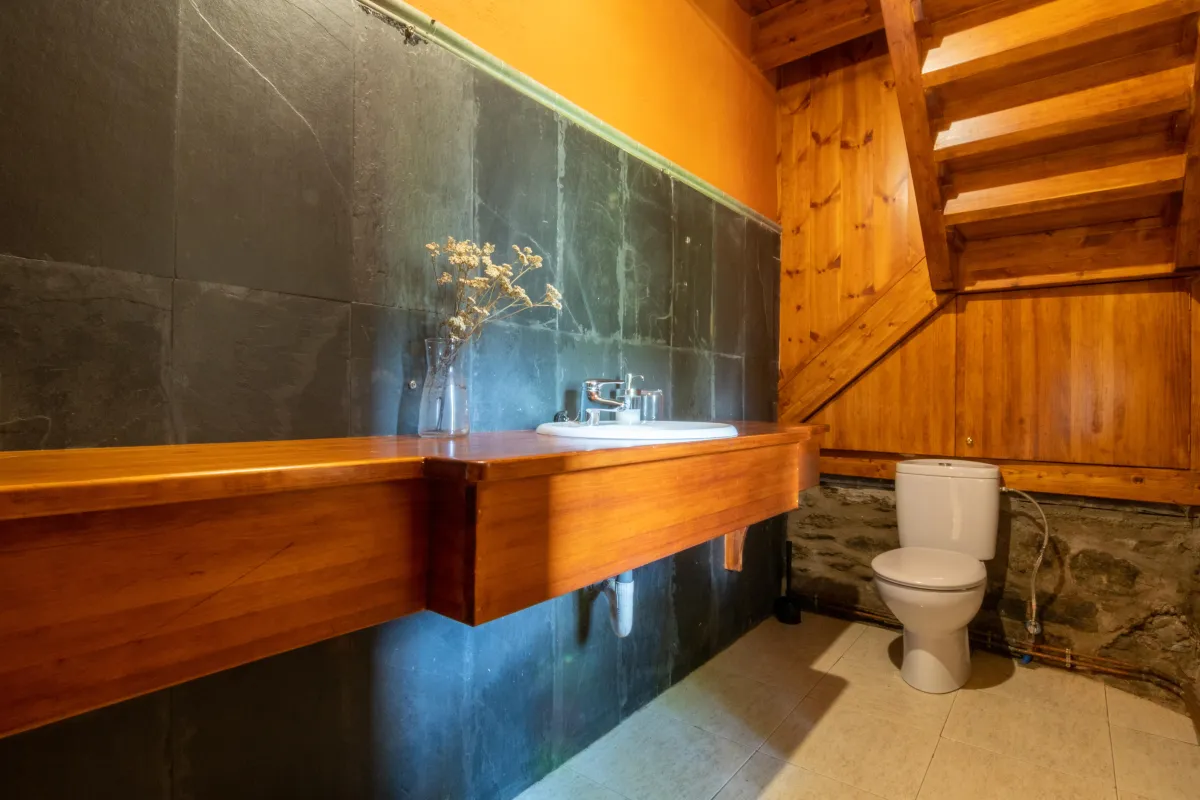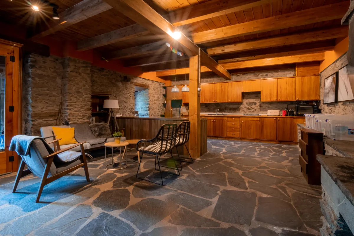 Dispone de dos tanques de agua con capacidad conjunta de hasta 1.500 L y grupo electrógeno de gasolina para el suministro eléctrico actual. La propiedad está lista para actualizar a sistema solar (placas + inversores) si se desea. Acabados en piedra y madera, coherentes con la arquitectura tradicional del Val d’Aran.